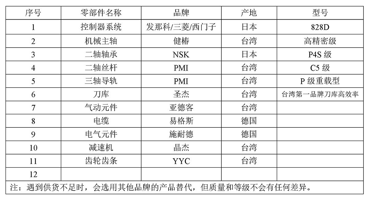 1.4主要零部件使用品牌及规格